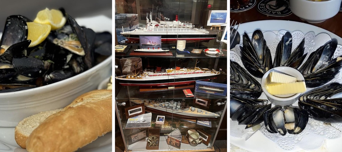 A visit isn’t complete without trying the mussels, which are highly recommended by the chef. The battered cod with chips and the steak and ale pie also receive rave reviews from diners.